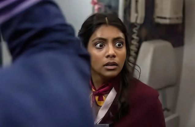 В ходе выступления Рейес садится на 16-часовой рейс до Сан-Франциско и пытается выяснить, кто из пассажиров – Призрак. Он садится в первый класс, выглядя как изгой- придурок, рядом с парнем, практикующим дзен-медитацию. Рейес опрокидывает бокал шампанского, что явно не подходит, но постучать по баку с реактивным топливом, чтобы налить несколько пинт, – тоже вариант. Впрочем, это неважно, потому что наш герой вскоре понимает, что за голову Призрака назначена многомиллионная награда, и, следовательно, в самолёте полно убийц, а значит, нас ждут удары кулаками, ногами, выдавливание глаз, удары ледорубами по черепам, метание бензопилы (да, конечно, почему бы и нет) и другие креативные способы лишения жизни людей. Он объединяется со стюардессой (Чаритра Чандра из «Ван-Пис» и «Бриджертонов» ) и начинает ломать кости и душить бандитов, а самооборона делает убийство ещё более сумасшедшим после того, как он принимает наркотики, от которых ваше лицо превращается в гримасу Джокера и заставляет видеть всякое. Похоже, что 9 километров полёта — недостаточно высокая высота для этого фильма.