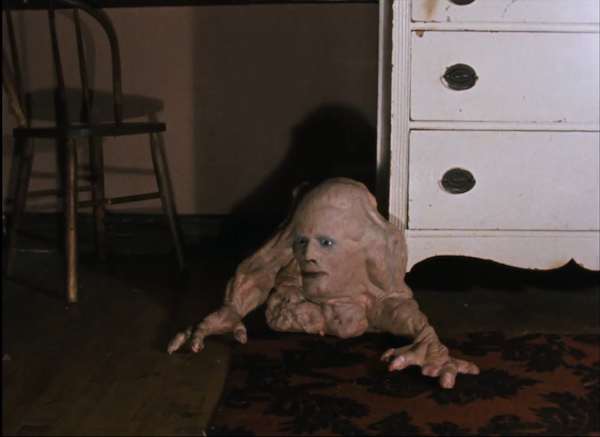 Дуэйн утверждает, что в корзине лежит его одежда, затем он идет в свою комнату и ведет с ней односторонние беседы, время от времени скармливая ей гамбургеры или полную упаковку сырых хот-догов. Что бы там ни находилось, какое-то время оно остается вне поля нашего зрения, или мы смотрим на это с его точки зрения. Вы можете быть удивлены, как долго Хененлоттер медлит с объяснением ставшей знаменитой предпосылки о том, что Дуэйн родился с сросшимся братом-близнецом по имени Белиал, который, по сути, был просто шишкой на боку.