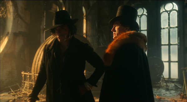 Этот Виктор выглядит немного более эффектно и вменяемо, чем доктор Франкенштейн в образе безумного ученого, но он чаще носит рубашку, чем в версии Кеннета Брана. (У него есть сцена в ванной). Тем не менее, нетрудно догадаться, что от него одни неприятности. Когда Харландер впервые навещает его, ему приходится бодро перепрыгивать через лужу крови, чтобы войти в парадную дверь. Мне нравится сцена, где Виктор бесстрастно осматривает осужденных, выстроившихся в ряд у виселицы, проверяет их зубы, оценивает их потенциал. “Это сильная спина. Этот подойдет”, — говорит он. Позже, когда Харландер заранее узнает о битве, которая может принести им еще больше трупов, Виктор сомневается только в их состоянии.