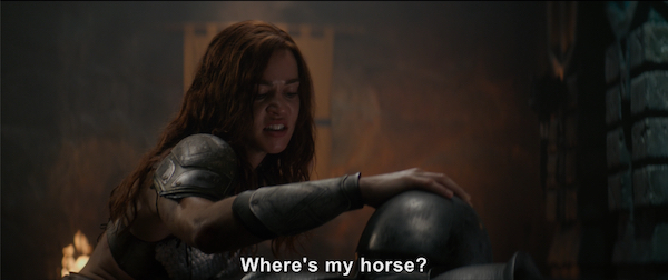 Эта часть фильма длится достаточно долго, и я уже подумал, что они не собираются покидать это место, но, к счастью, в конце концов они это делают. Когда у нее появляется шанс сбежать, она первым делом отправляется спасать свою лошадь. Она очень зла из-за этого дерьма. В этом есть что-то от ДЖОНА Уика.