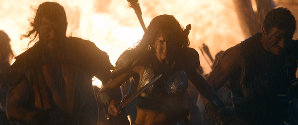 Действие происходит в Гиркании, в Хайборийскую эпоху. Когда Соня (Матильда Лутц из замечательного фильма Корали Фарджит «МЕСТЬ») была ребенком, на ее деревню напали, и она сбежала. (В отличие от некоторых фильмов о варварах 80-х, нам не нужно уточнять, какие ужасные вещи совершали налетчики.) С тех пор она каким-то образом стала отличным бойцом и живет без племени в лесу, разыскивая свой народ.