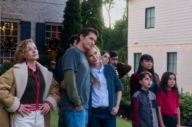 Подождите, мы всё ещё говорим о фильме FZWOOP ? Да, конечно! Клэр — мама, дети которой уже выросли, и её муж Ник (Денис Лири) тоже живёт отдельно. Пока она занимается всеми делами, он сидит в гараже и собирает кукольный домик, для сборки которого, похоже, требуется инженерное образование, которого у него явно нет. Это подарок для их внуков-близнецов, которые скоро приедут в гости к своей матери, Ченнинг (Фелисити Джонс), старшей дочери Клэр и Ника, то есть ответственной, и её чудаковатому мужу Дугу (Джейсон Шварцман). Средняя дочь — Тейлор (Хлоя Грейс Морец), которая каждый год появляется с новой подругой, на этот раз с Донной (Девери Джейкобс), представленной как диджей в спортивных штанах — это шутка поколения Z! Нынешняя молодёжь! Им нравится плохая музыка, и они носят неряшливую одежду! Пожалуйста, посмейтесь! Младший из братьев — Сэмми (Доминик Сесса, к сожалению, очень далек от нового рождественского хита «The Holdovers »), бездельник, только что расставшийся со своей девушкой (Мод Апатов). Через дорогу живет заклятая соперница Клэр по рождественским украшениям и совершенству праздника, Жанна (Джоан Чен), чья дочь Лиззи (Гавана Роуз Лю), возможно, только что бросила испепеляющий взгляд в сторону Сэмми.
