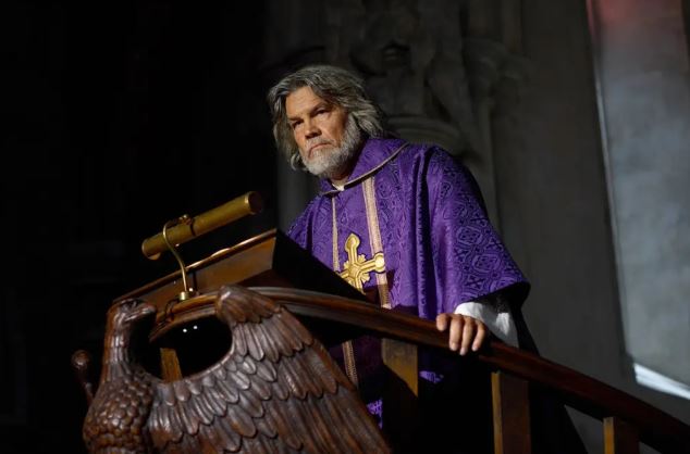 На самом деле, давайте не будем вдаваться в подробности, и нет, я не собирался использовать эвфемизм, связанный с лобковыми волосами. Уикс, без спойлеров, в итоге умрет, потому что кто-то в этом сюжете должен умереть. Его верные последователи: Марта Делакруа (Клоуз), всесторонне одаренная управляющая церковью, если можно так выразиться, и самая преданная служанка Уикса; возможно, стоит отметить, что после того, как Уикс принимает ее исповедь, он выходит из кабинки весь в поту и тяжело дышит, как будто только что пробежал три марафона. Городской врач Нат Шарп (Реннер), переживающий болезненный развод. Адвокат Вера Дрейвен (Вашингтон) и ее взрослый приемный сын Сай (Дэрил Маккормак), неудачливый, но все еще подающий надежды политик от Республиканской партии. Симона Вивейн (Спейни), бывшая звезда виолончели, прикованная к инвалидному креслу, чья карьера была разрушена хронической болью. Ли Росс (Скотт), писатель-фантаст. И Самсон Холт (Черч), приходской садовник. Это не говорится напрямую, но я думаю, что все эти люди — республиканцы, потому что есть некоторые склонности в этом направлении, а также потому, что никто из них не уходит, когда Уикс в воскресенье забирается на свою огромную кафедру, расположенную на носу корабля, и выкрикивает ужасные ругательства прямо в адрес одиноких матерей или представителей ЛГБТ-сообщества, которые могут случайно зайти в церковь.