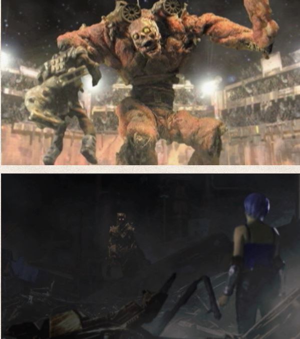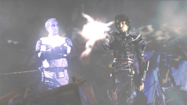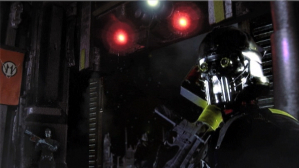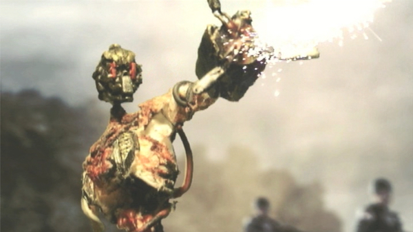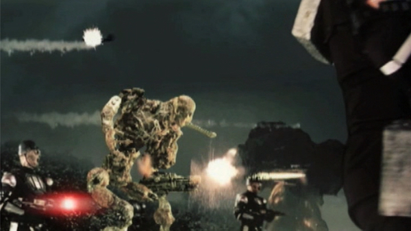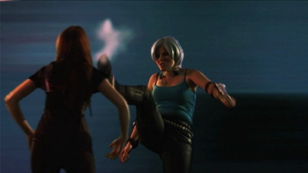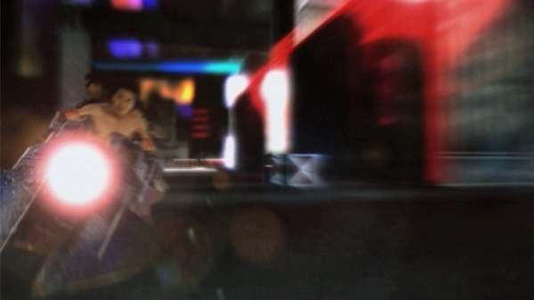 В некоторых из этих сложных кадров, представляющих собой наложение слоев живых актеров, двухмерных фонов, цифровых взрывов и тому подобного, а иногда даже очаровательно грубых персонажей, созданных с помощью покадровой анимации, чувствуется некий коллажный эффект. Они приняли необычное решение, добавив эффект пропуска кадров; я думаю, это сделано для того, чтобы смягчить глянцевость цифрового видео, но, на мой взгляд, это также интересным образом усиливает искусственность. Трудно описать, но создается ощущение, будто мутные ночные сцены из фильмов категории B на VHS были обработаны с помощью CD-ROM игр, чтобы создать новую (но почему-то знакомую) эстетику. Темный город, освещенный неоном, огнем, глючными голограммами и яркой анимационной графикой на экранах телевизоров всех форм и размеров.
