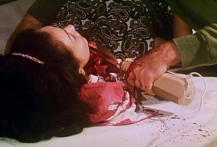 Эстетика Льюиса всегда отличалась рисованием пальцами на тему кровопролития, и здесь он еще больше усиливает эту отвратительную абсурдность. Кровь невероятно яркая, игра актеров агрессивно деревянная, а юмор настолько сухой, что граничит с сюрреализмом. Сцены затягиваются далеко за пределы комфорта не потому, что создают напряжение, а потому, что Льюис, кажется, извращенно очарован механикой увечий. Печально известные скальпирования поставлены с энтузиазмом зазывалы на ярмарке — затяжные крупные планы, резиновые декорации и густые, почти съедобные, алые пятна. Это гротескно, да, но также странно завораживает своей целенаправленной приверженностью к излишествам.