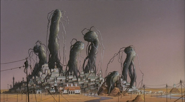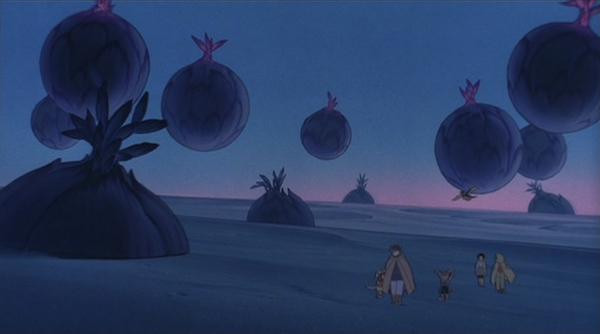 Для меня этого было достаточно, чтобы это послужило волшебным источником энергии, который обогатил это путешествие в другую реальность. На мой взгляд, «НАВСИКАА» — гораздо лучшая история, но в этой тоже есть своя прелесть: возможность погрузиться в фантастическое место с его причудливыми растениями, существами, технологиями и верованиями. На поверхности люди живут просто и в гармонии с природой, у них есть мечи и плащи, но под землей — реактивные планеры, лазерные пушки и прочее. Может, поэтому их и изгнали.