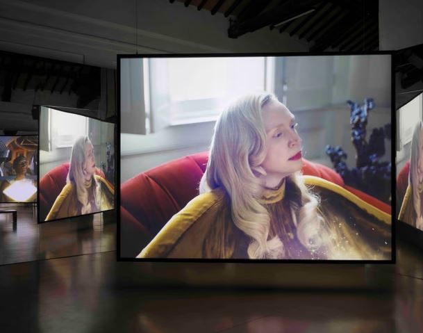 Фильм, демонстрируемый на одном экране в центре калейдоскопа стоячих зеркал, представляет Шейлу Атим и Гвендолин Кристи в роли божеств из научной фантастики, которые бродят по палаццо эпохи Возрождения, модернистскому стеклянному дому и Космическому дому, обсуждая конец света, возможность путешествий во времени и природу Бога. По причинам, которые не сразу понятны, у них происходят значимые встречи с кибернетическими морскими звездами, и они вызывают в воображении сверкающие космические корабли. Огненные бури бушуют по поверхности Солнца, а биолюминесцентные морские существа шевелят неоновыми щупальцами. Если у вас аллергия на претенциозность, можете прекратить чтение здесь, потому что это произведение искусства не для вас.