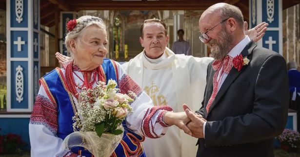 Но, как однажды метко заметил один умник, если бы всё было так просто. Халина убегает ещё до того, как прозвучат клятвы, и перед ними стоят Ян, священник, подружка невесты, шафер, начальник полиции, оркестр (с тубой — какая же польская свадебная церемония без тубы?) и все гости, недоумевая, что же, чёрт возьми, произошло. Но мы, зрители, будучи относительно всезнающими, знаем, что произошло. Местный болван Войтек (Филип Гурлач) сообщает Халине, что она погрязла в долгах после того, как отдала ему все свои деньги на инвестиции в криптовалютную схему, которая, к всеобщему удивлению, с треском провалилась. Ферма конфискована, и она так опозорена, что больше не может выйти замуж за Яна.