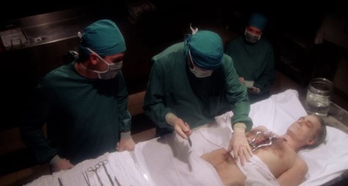 Есть один выдающийся эпизод, где навязчивые идеи Фульчи полностью сходятся воедино — где сверхъестественное вторжение проявляется через тело таким образом, что это одновременно резко и крайне неприятно. Это тот момент, когда сон внезапно переходит в физический ужас: плоть становится доказательством, камера задерживается, и гротескные образы — очень похожие на те, что возникают при осмотре патологоанатомических столов — обрушиваются с холодной, клинической тяжестью. Речь идёт не о шоке ради самого шока; речь идёт о том, чтобы заставить вас смириться с разложением, с мыслью, что смерть ничего не решает, она просто меняет ракурс.
