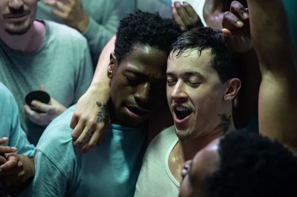 Однако несколько менее убедительным является сценарий Хантера Эндрюса и Эоина Дорана, для которых это также дебют в полнометражном кино. Используя резко противоположные мужские архетипы, но слабо проработанные персонажи, фильм выстраивает клаустрофобную драму вокруг борьбы заключенных за альфа-статус в этих мрачных, выбеленных синим цветом стенах, хотя и лишь вскользь затрагивает системные недостатки, управляющие этой грязной борьбой, или, точнее, невысказанные социальные и расовые конфликты, предположительно пронизывающие микрокосм современной британской мужественности, словно котёл под давлением. (Если не считать колоритных акцентов, тон драмы больше всего напоминает провокационный сериал HBO «Оз», вышедший несколько десятилетий назад.)